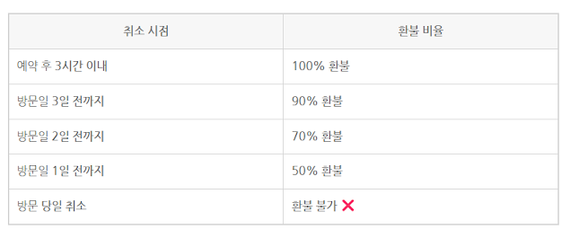 방문일 전날까지는 자유롭게 취소 가능하지만, 당일 취소는 제한될 수 있습니다.