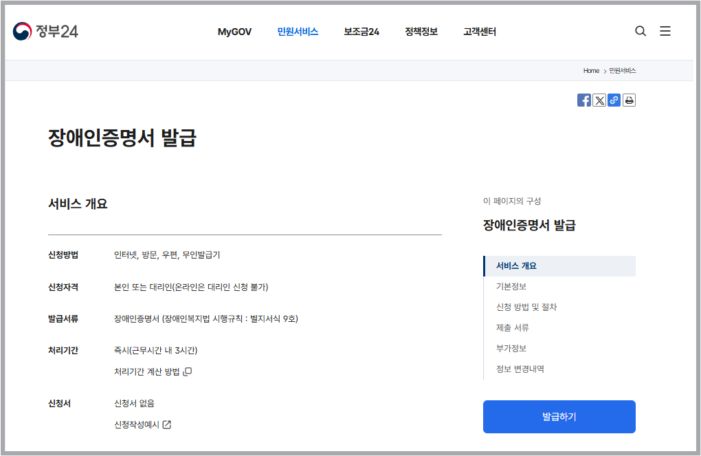 빠르게 장애인증명서를 발급받고 싶다면 정부24 온라인 발급을 추천합니다! 😊
