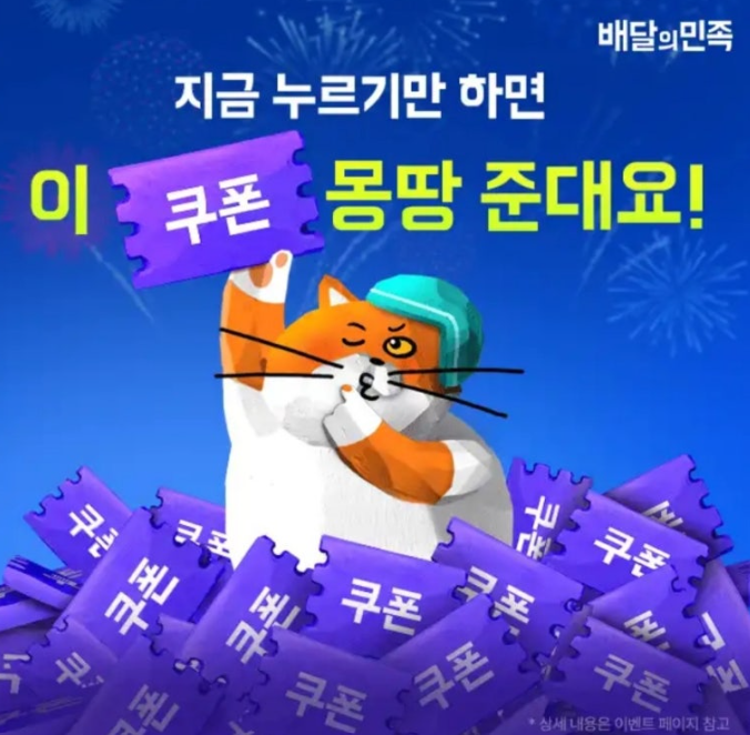 Q. 지금 배민에서는 BBQ, 페리카나, 두찜, 이삭토스트, 00000 쿠폰을 모두 드려요! 빈 칸에 들어갈 말은? (힌트 : 이벤트 페이지에서 확인하실 수 있어요)