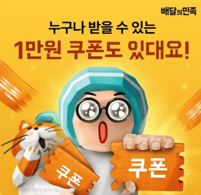 지금 배달의민족에서는 치킨, 피자, OO 누구나 최대 1만원 할인중! 빈 칸에 들어갈 말은? (힌트 : 이벤트 페이지에서 확인하실 수 있어요)