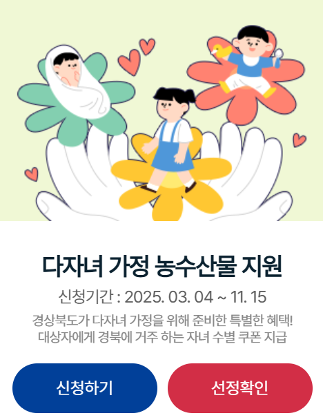- 신청일 기준, 2자녀 이상 경상북도 거주