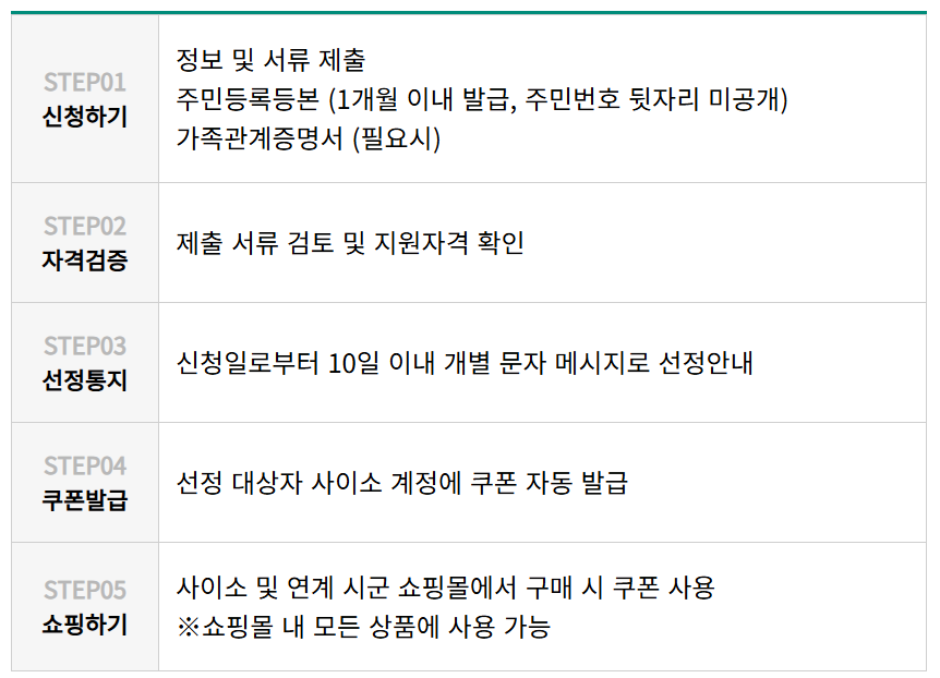 - 사용처 : 사이소 및 연계 시ㆍ군 쇼핑몰에 사용 가능