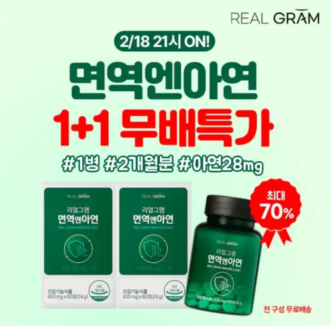 단 1시간 동안 진행되는 캐시딜 타임특가에서 면역엔아연 400mg x 60 (24g)0 1+1 초특가로 14,800원에 무료배송으로 진행됩니다. 0000 면역엔아연은, 면역력 관리에 필수인 아연을 1일 1정으로 쉽게 충족할 수 있어요! 빈칸에 들어갈 단어는 무엇일까요?